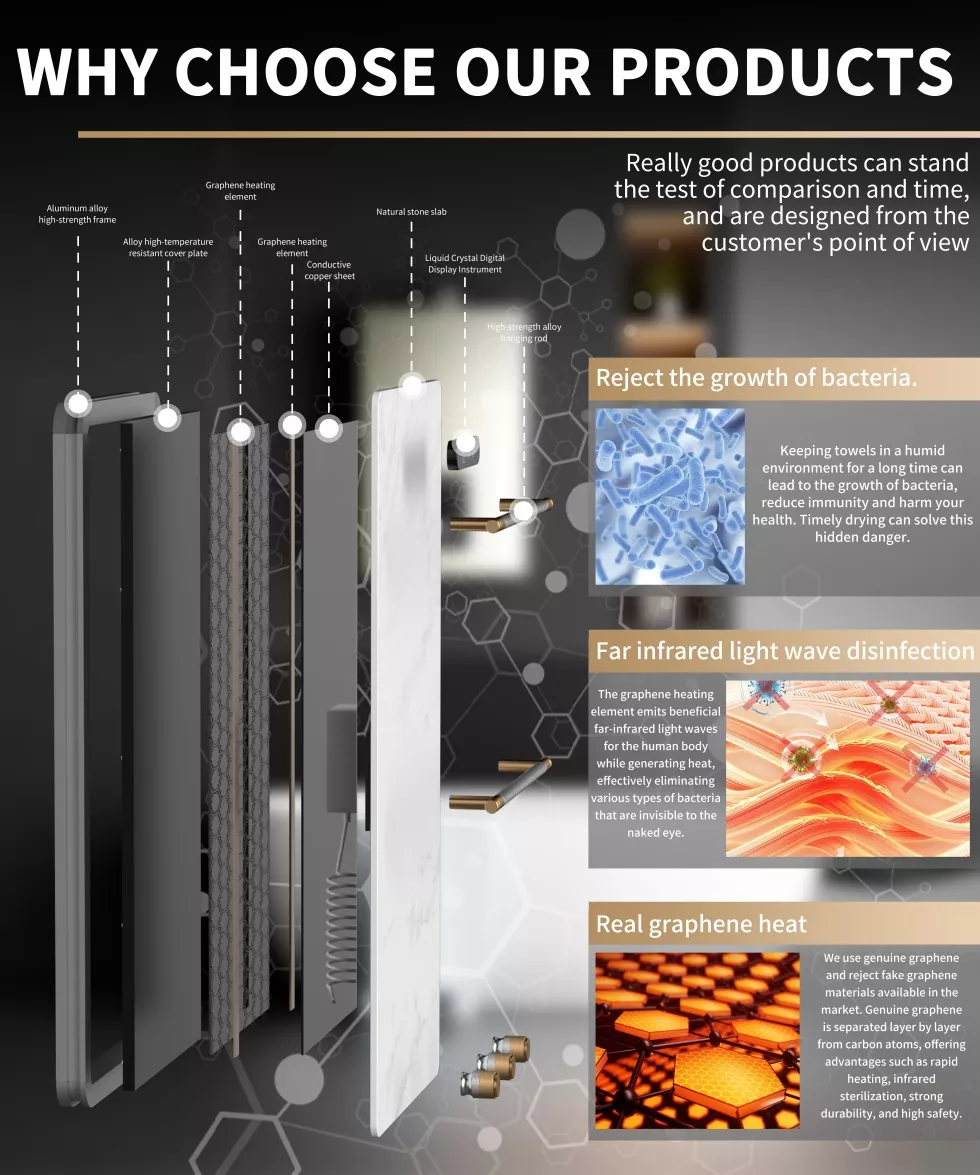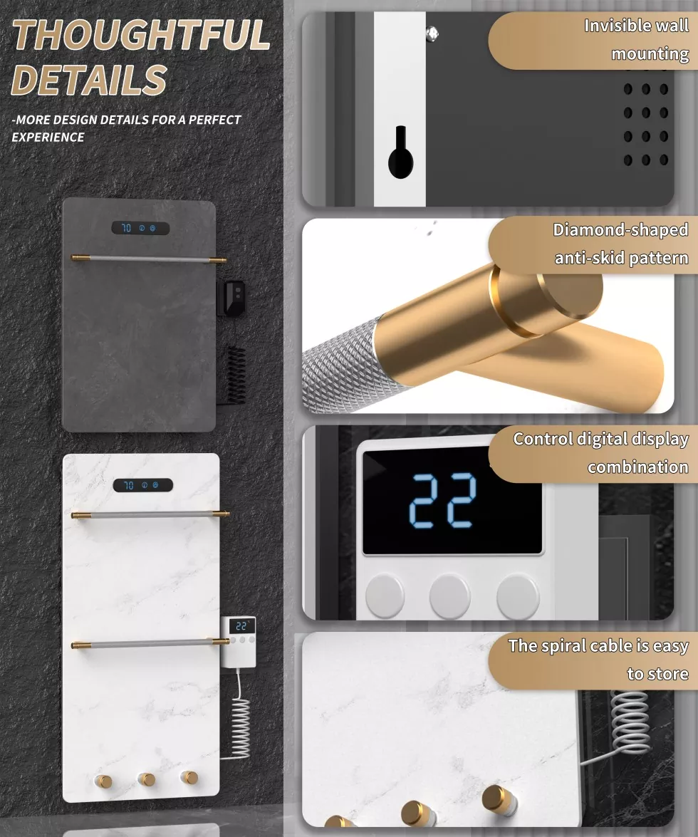 중국의 전문 제조업체 인 Meshow는 고급 기술과 절묘한 장인 정신을 혁신적으로 통합하여 회색 그래 핀 록 타월 랙을 출시하여 전 세계 사용자에게 고품질의 홈 즐거움을 제공합니다. 탁월한 내구성과 효율적인 열전도율을 갖는 그래 핀은 타월 랙 설계에 통합되어 구조적 내구성을 향상시키고 우수한 열전도율을 부여하여 타월의 빠른 가열 및 건조를 달성합니다. 이 회색 그래 핀 암석 패널은 다양한 욕실 장식 스타일에 완벽하게 적합한 현대적이고 미니멀리스트 디자인을 특징으로합니다.
